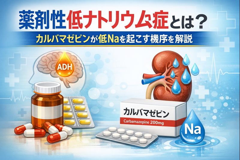 今回は、薬剤性低ナトリウム血症の全体像を整理し、特にカルバマゼピンによる低ナトリウム血症の機序について解説します。