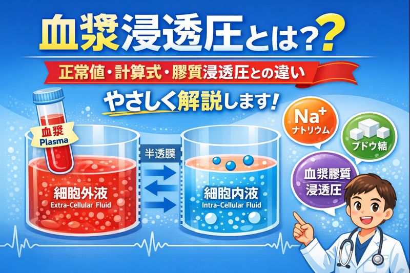 血漿浸透圧とは、血漿(血液の液体成分)に含まれる溶質粒子がつくり出す浸透圧のことです。